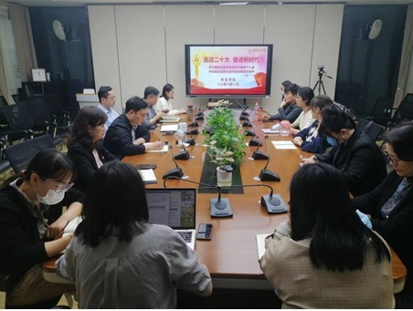 10月16日上午,中國共產黨第二十次全國代表大會在北京隆重開幕。珠寶學院黨委高度重視,精心組織院班子成員、三級單位負責人、黨支部書記、全體師生黨員于珠寶大樓B座四樓報告廳集中收看黨的二十大開幕會,組織院學生會成員、研究生骨干在珠寶大樓B座407會議室集體收看,其余師生在工作室、宿舍里收聽觀看。開幕會結束后,學院領導班子成員、黨支部書記以及5位黨員代表于珠寶大樓B座919會議室開展座談,暢談各自的心得體會。院學生會成員、研究生骨干在珠寶大樓B座407會議室集體收看完開幕會后隨即舉行了座談。