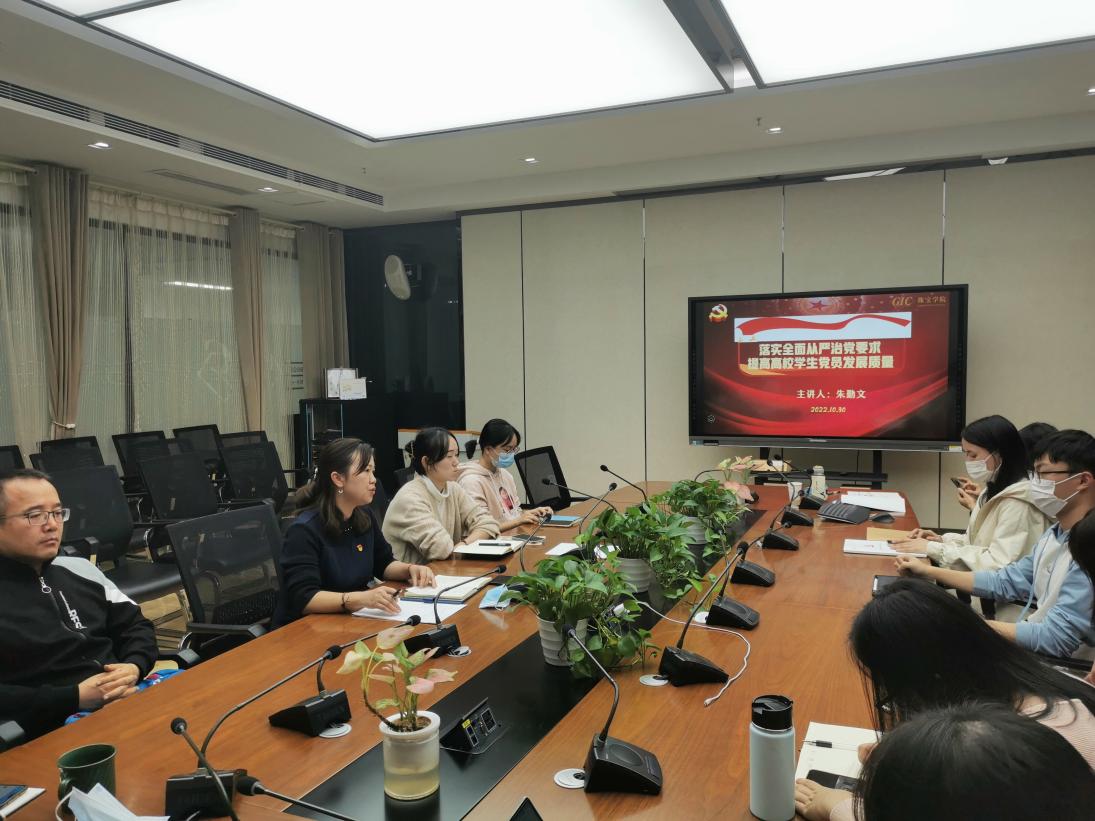 朱勤文結(jié)合學(xué)習(xí)黨的二十大精神談到,習(xí)近平總書記代表黨的十九屆中央委員會(huì)向大會(huì)做的工作報(bào)告,對(duì)當(dāng)前和今后一個(gè)時(shí)期我們的工作指明了方向,黨的二十大修改的《黨章》對(duì)要求入黨的積極分子進(jìn)行教育和培養(yǎng)以及在青年中發(fā)展黨員作出了明確規(guī)定。學(xué)習(xí)黨的二十大精神,落實(shí)全面從嚴(yán)治黨要求,切實(shí)提高學(xué)生黨員發(fā)展質(zhì)量尤為重要。她從黨員發(fā)展材料中存在的問題切入,對(duì)提高黨員發(fā)展工作進(jìn)行了深入解讀,并與會(huì)人員進(jìn)行互動(dòng)交流,勉勵(lì)大家落實(shí)全面從嚴(yán)治黨要求,進(jìn)一步將提高黨員發(fā)展質(zhì)量落到實(shí)處。