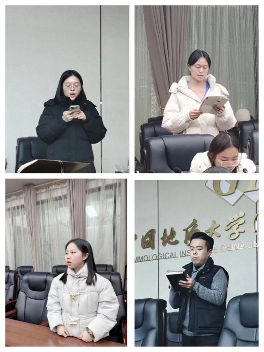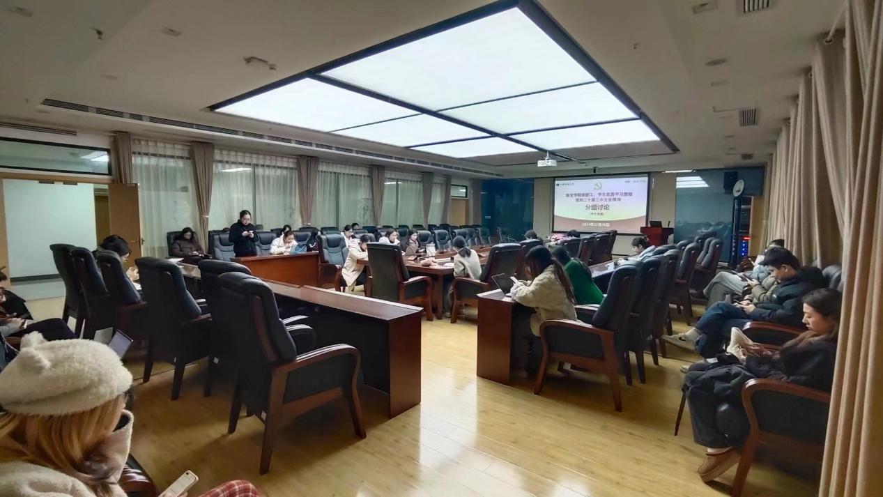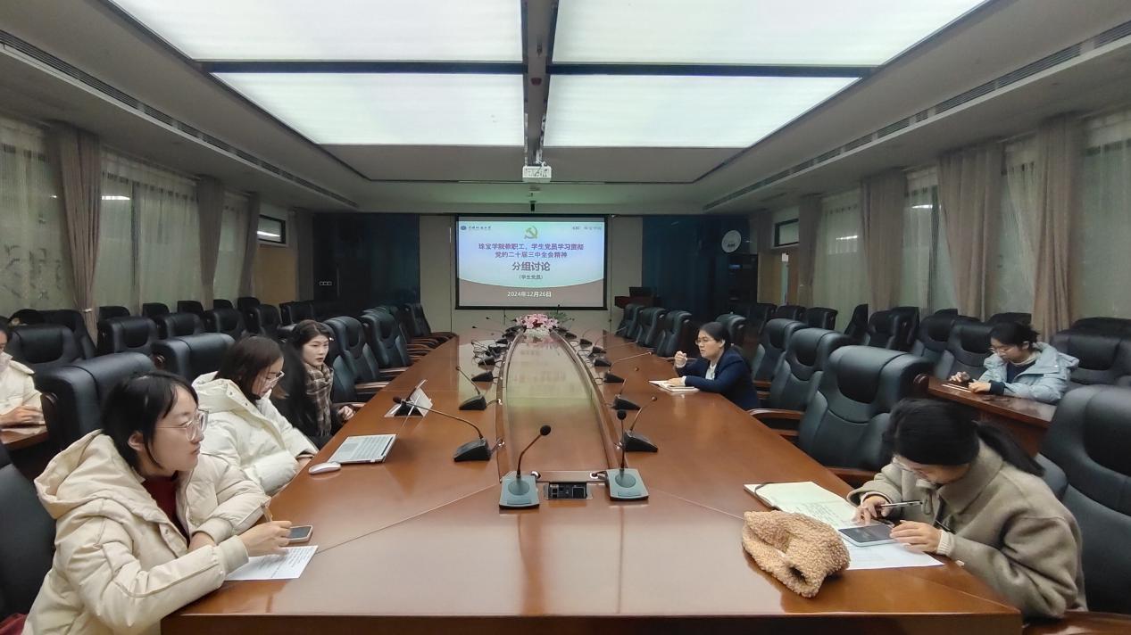 2024年12月26日,中國地質大學(武漢)珠寶學院組織開展“學習貫徹黨的二十屆三中全會精神”學習交流活動,大會分為教職工黨員會場和學生黨員會場。其中,學生黨員分會場會議由團委書記湯凡渺主持。