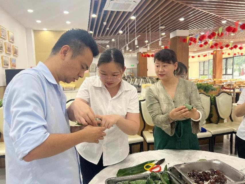 在活動現場,成員們在指導下進行粽子的制作,包括剪裁粽葉、折疊成三角形、填充糯米、加入蜜棗、壓實粽子形狀以及綁扎棉繩。大家在交流包粽子技巧的同時,也愉快地分享各自獨特的粽子造型,現場洋溢著熱烈的氣氛。此次活動富含傳統文化的深厚底蘊,同時兼具生動趣味,不僅使參與者收獲滿滿,更激發了大家對傳統文化的熱愛之情,是一次弘揚和傳承我國的優秀傳統文化、增強文化自信的重要體驗。