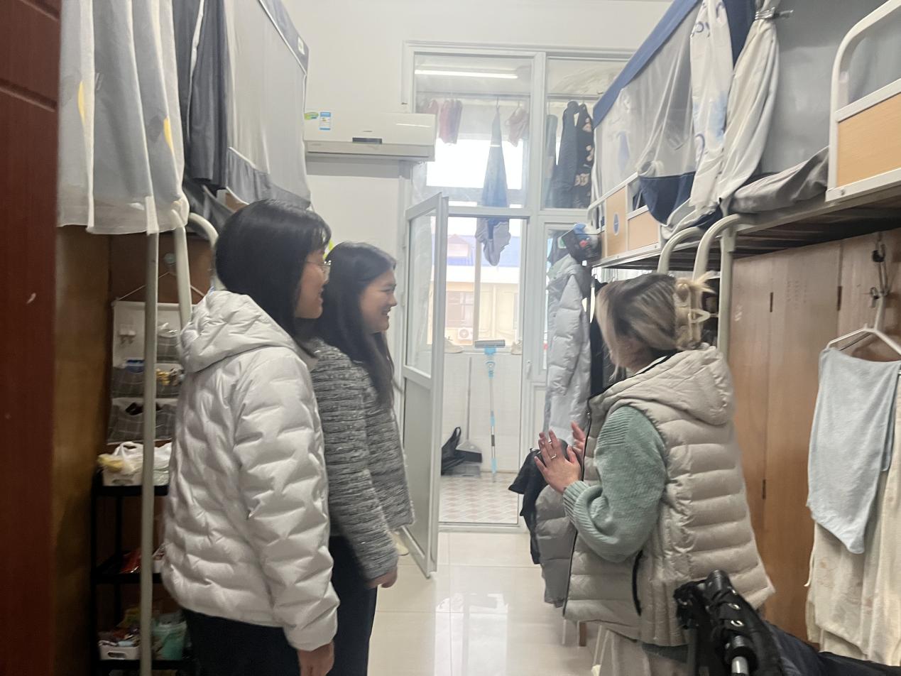 在走訪過程中,老師們細致入微地關注著同學們的日常生活細節,從宿舍床鋪的加長到安全護欄的安裝,充分體現了學院對學生生活品質的重視。同時,老師們溫馨提醒同學們要密切關注春季多變的氣候,合理規劃作息時間,確保身體健康和精力充沛。