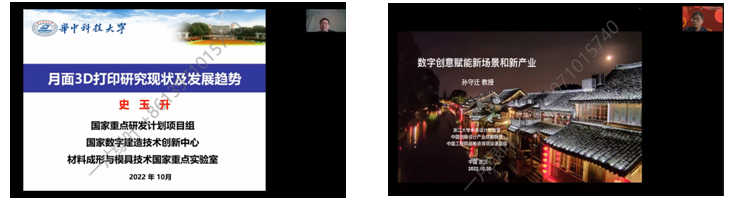 并來自浙江大學的張宏福院士 ,線上作了題為“珠寶與克拉通形成與破壞之聯系”的專題報告;來自南方科技大學創新創意設計學院的關道文院長,線上作了題為“可穿戴科技藝術融合” 的專題報告;來自華中科技大學的史玉升教授,線上作了題目為“月面3D打印技術” 的專題報告;來自浙江大學的孫守遷教授,線上作了題目為“數字創意賦能新場景和新產業” 的專題報告。
