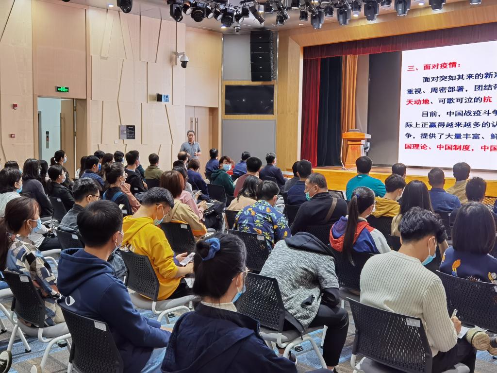 (通訊員及攝影 蔡智全)10月8日下午,副校長(zhǎng)王華在珠寶樓四樓報(bào)告廳以《抗疫與自信 使命與創(chuàng)新》為題為珠寶學(xué)院全體教師、學(xué)生黨員等100余人授課。