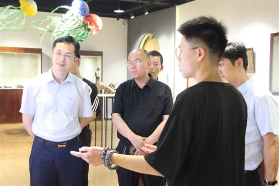 南陽師范學院珠寶玉雕學院黨委書記李春杰、院長徐永斌等熱情接待尹院長一行。考察期間,徐院長介紹了南陽師范學院珠寶玉雕學院的辦學規模、辦學條件及專業設置,考察團參觀了寶石鑒定、寶玉石加工、服裝制作實訓室及畢業生藝術作品,尹院長對珠寶玉雕學院的辦學成就予以肯定。