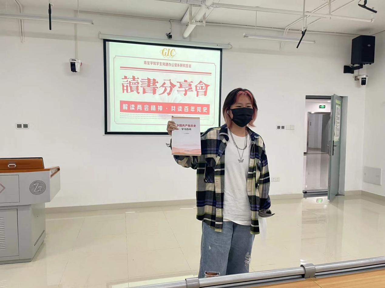 在書目推薦環節,2020級研究生、兼職輔導員趙安迪向大家推薦了《中國共產黨歷史學習百問》、《月亮與六便士》兩本書,并建議大家一書多讀,對書中蘊含的哲理進行更深的思考。