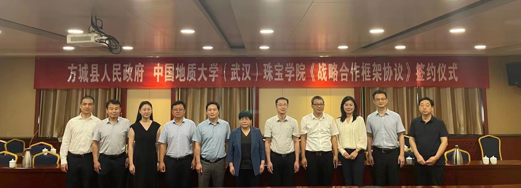 為進一步深化校地合作,8月3日珠寶學院黨委書記薛保山,院長尹作為,副院長陳全莉,教師代表殷杰受邀參加中國地質(zhì)大學(武漢)珠寶學院與河南省南陽市方城縣政府《戰(zhàn)略合作框架協(xié)議》的簽約儀式。