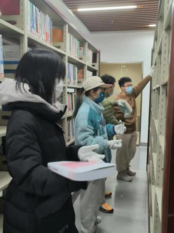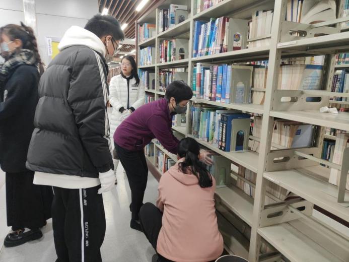 12月1日下午,珠寶學院的志愿者們在圖書館蘇老師和活動負責人瞿新月的組織下憑借24小時核酸檢測證明進入圖書館。抵達指定工作區域后,志愿者們戴上手套,在圖書館蘇老師的指導下按照從右至左,從上到下的順序擺放和抽取對書架上大量的書籍重新順架、倒架和排架。