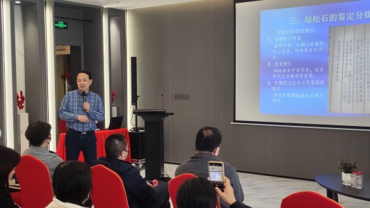 楊明星教授面向到場聽眾,從多個方面講解了不同種類玉石的特點及價值評價,著重介紹了翡翠、綠松石等典型玉石。讓消費者更好地了解到玉的鑒定標準,提高大眾對玉欣賞的專業(yè)性以及科學性。楊明星教授專業(yè)全面的知識科普,富有趣味的案例共享,讓聽眾從認識到實踐,切實感受到了玉的獨特魅力。