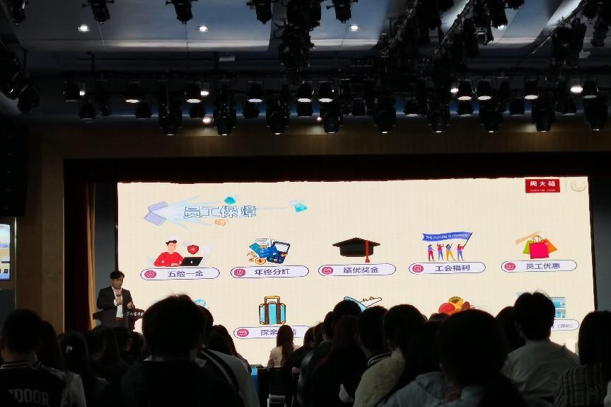 公司總部招聘經理梁端介紹了周大福公司的成長歷史、商業規模、五大優勢以及企業文化。同時對招聘崗位、員工的一些基本要求進行明確解讀。