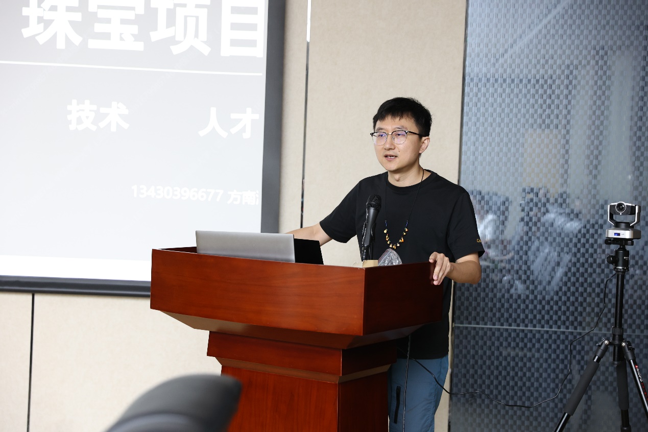 第七場報告由深圳龍崗珠寶協會方南海以“智能制造和潮玩文創在珠寶領域的商業價值”為題從介紹自己和團隊如何從珠寶行業入手,分享了關于消費品牌、投資技術以及人才培養等關鍵詞的思考。并在演講中提到了珠寶行業與美妝和服裝等行業的對比,認為珠寶行業具有獨特的優勢。同時,講者也關注了珠寶行業未來的發展,詢問了聽眾是否會繼續從事該領域工作。最后,以皮爾卡丹為例,強調了珠寶行業的重要性和價值。
