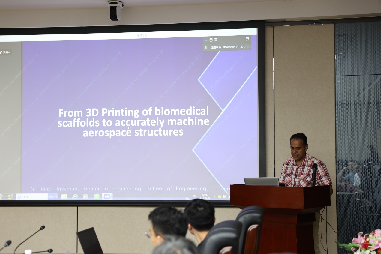 第二場報告由英國伯明翰大學Hany Hassanin 教授以“Advanced manufacturing from 3D printing of biomedical scaffolds to accurately machine aerospace structures”為題進行分享。報告介紹了一種將先進制造技術應用于生物醫學領域的研究項目,探討了如何通過3D打印技術來制備人工骨材料,以改善人類骨骼的性能,為骨折愈合和再生提供了一種潛在的解決方案,接著介紹了材料設計、工藝優化和機器人制造方面的應用,同時還探討了能源系統和X射線技術在工業自動化和機器人制造中的應用以及有關傳感器的技術。