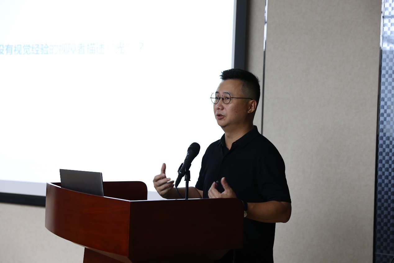 第四場報告由武創院企業創新中心李昱谷以“數字制造與藝術”為題開展,報告指出不同的藝術載體都有其獨特的內核和表現形式,藝術創作中的色彩與光影的關系極其重要,以雕塑、繪畫等藝術形式為例講解了如何通過分解形體和色彩等方式進行思考和創新。基于數字技術的應用,如AR、VR等技術可以更好地創造出更加具有視覺沖擊力的作品的特點,李昱谷介紹了VR沉浸設計的實現過程。同時展示了其團隊的VR音樂游戲研發項目,并介紹了研發過程中遇到的挑戰以及對應解決方案。在報告最后,李昱谷表示數字技術為文化內涵的挖掘提供了更廣大的應用空間。