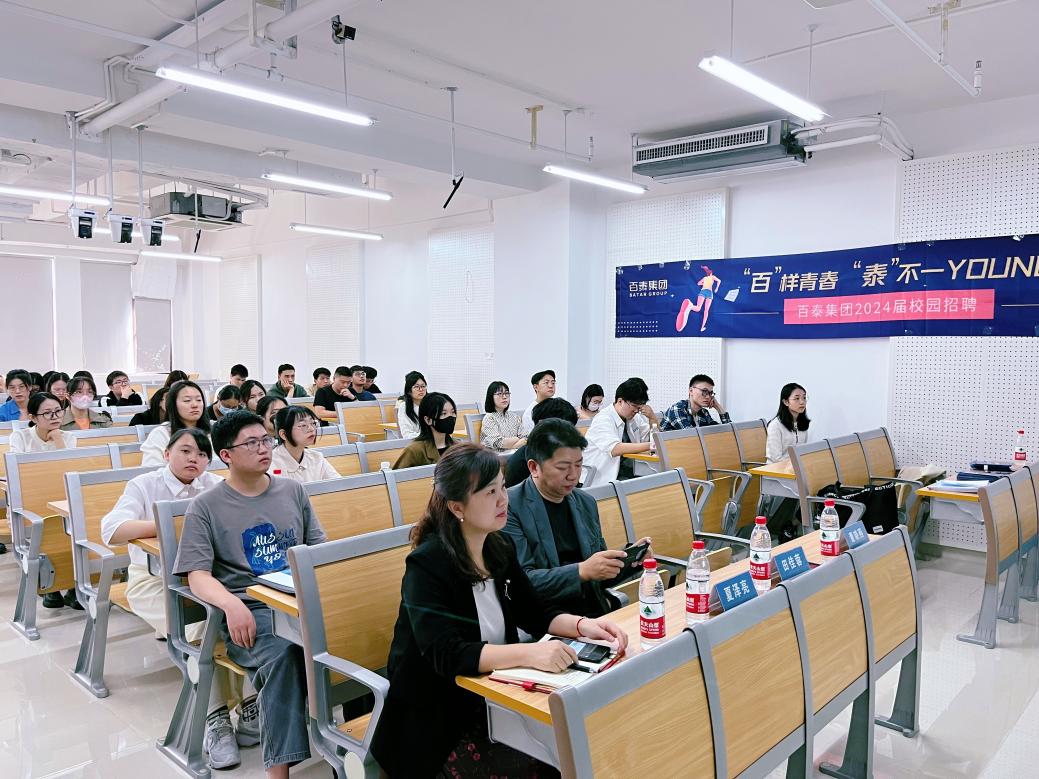 百泰人力資源總監田佳蓉女士詳細介紹了百泰集團的企業概況、文化、發展規劃、福利待遇、工作環境、崗位需求等方面的介紹。