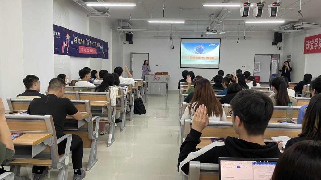 為了拓寬畢業生就業渠道,增加畢業生就業機會,2023年10月18日上午,在珠寶學院807教室百泰集團面向珠寶學院進行招聘宣講。珠寶學院黨委副書記陳漢英老師介紹了百泰公司來賓,并致以熱烈歡迎。