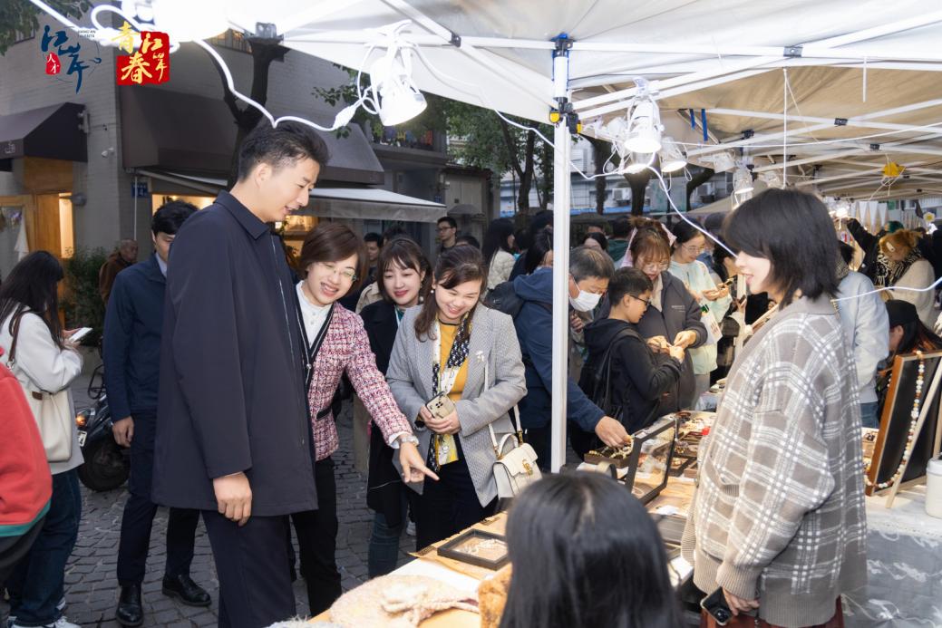 11月10日,珠寶學(xué)院黨委副書(shū)記陳漢英以及學(xué)院學(xué)生一同前往漢口歷史文化風(fēng)貌街區(qū)黎黃陂路步行街參加2023年江岸人才青春市集暨數(shù)字文化人才創(chuàng)新基地揭牌儀式活動(dòng)。