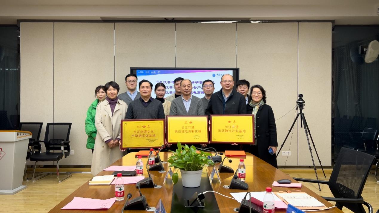 嚴祥、江廣長、薛保山代表三方簽署合作框架協(xié)議,三方共同為“長江非遺”文化產(chǎn)學研實訓基地、“長江非遺”出版融合產(chǎn)業(yè)基地“長江非遺”供應(yīng)鏈電商孵化器揭牌。(通訊員 劉浩城)