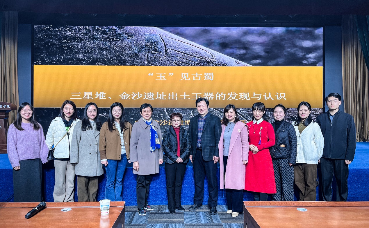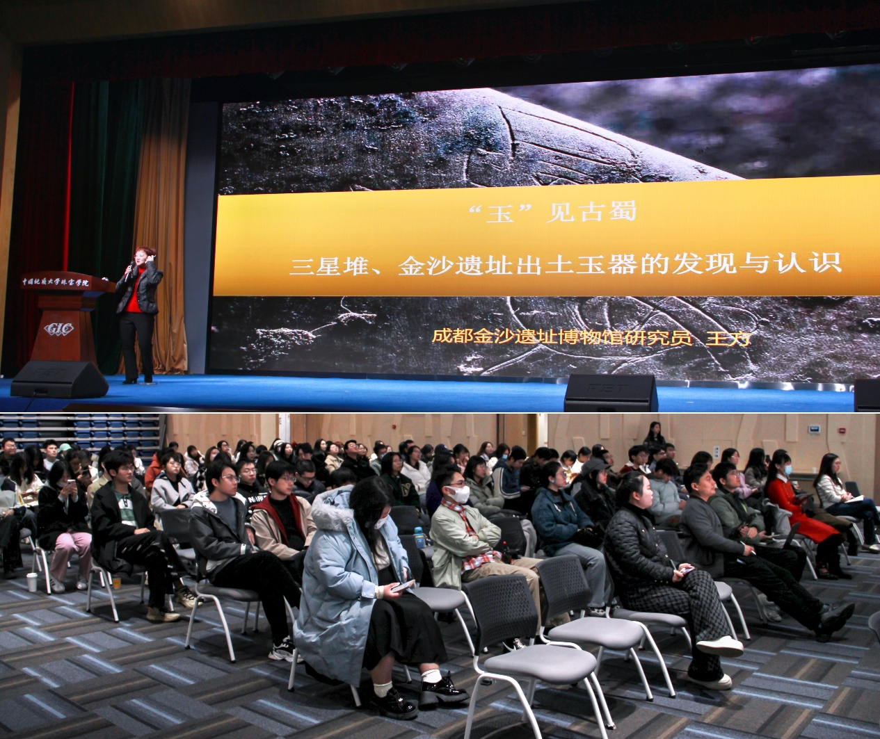 2024年3月11日,成都金沙遺址博物館副館長王方研究館員應朱勤文教授邀約,在珠寶學院四樓多功能報告廳為珠寶學院師生作《“玉”見古蜀——三星堆和金沙遺址出土玉器的發現與認識》的學術講座。珠寶學院黨委書記薛保山主持,師生共200余人參與講座。