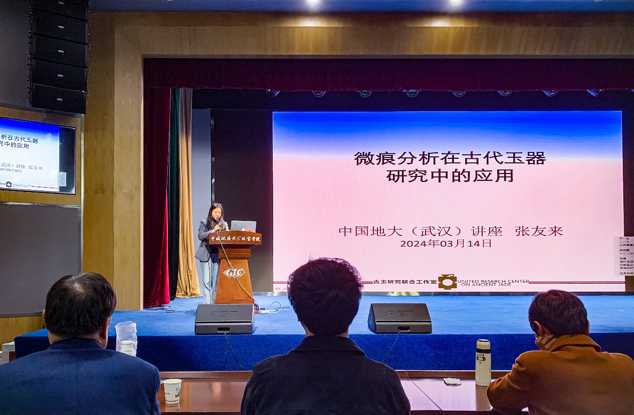2024年3月14日,河南大學講座教授張友來應朱勤文教授邀約,在珠寶學院四樓多功能報告廳為珠寶學院師生作《微痕分析在古代玉器研究中的應用》的學術講座。珠寶學院寶石系主任陳濤教授主持,師生共200余人參與講座。