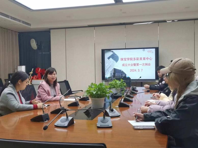 為了適應教育部關于美育工作的要求,在前期學院系列美育工作的實踐基礎上,珠寶學院多彩美育中心應運而生。2024年3月7日下午,珠寶學院多彩美育中心成立大會暨第一次例會在珠寶大樓919會議室舉行。院黨委副書記陳漢英,院團委書記湯凡渺老師,多彩美育中心主任楊俊峰及其成員參加了本次會議。