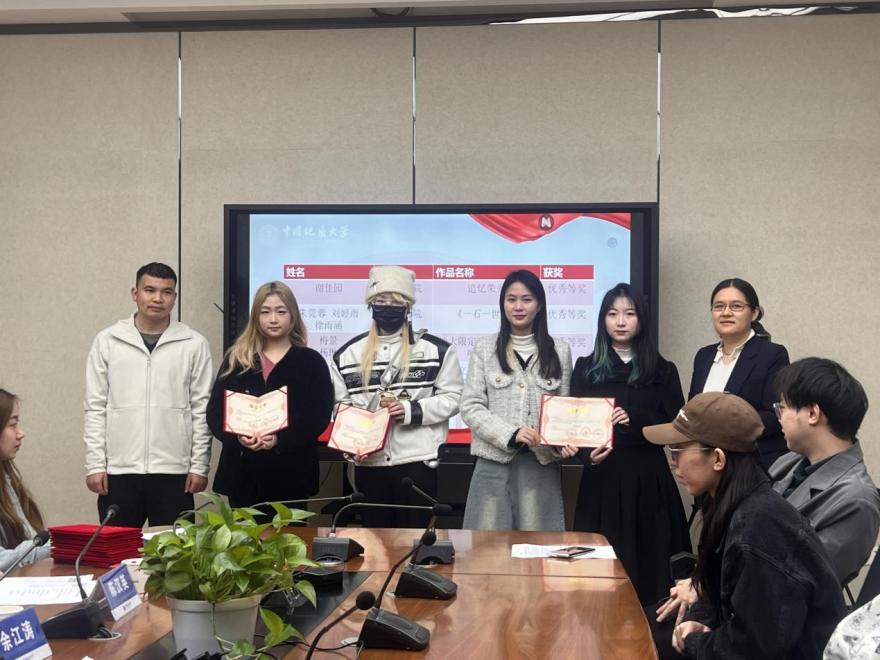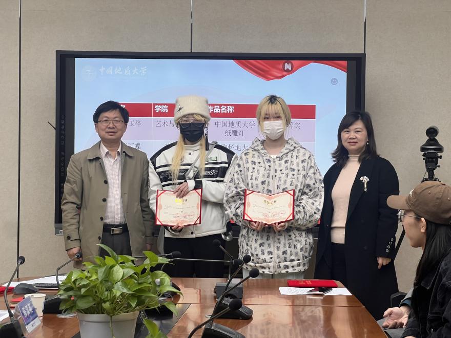張琰副總經理宣讀表彰決定。本次比賽經過作品征集,層層篩選,共評出一等獎1名,二等獎2名,三等獎4名,優秀獎4名。張琰鼓勵同學們積極參加文創設計大賽,希望有更多學生的文創作品能夠展現地大文化風采。
