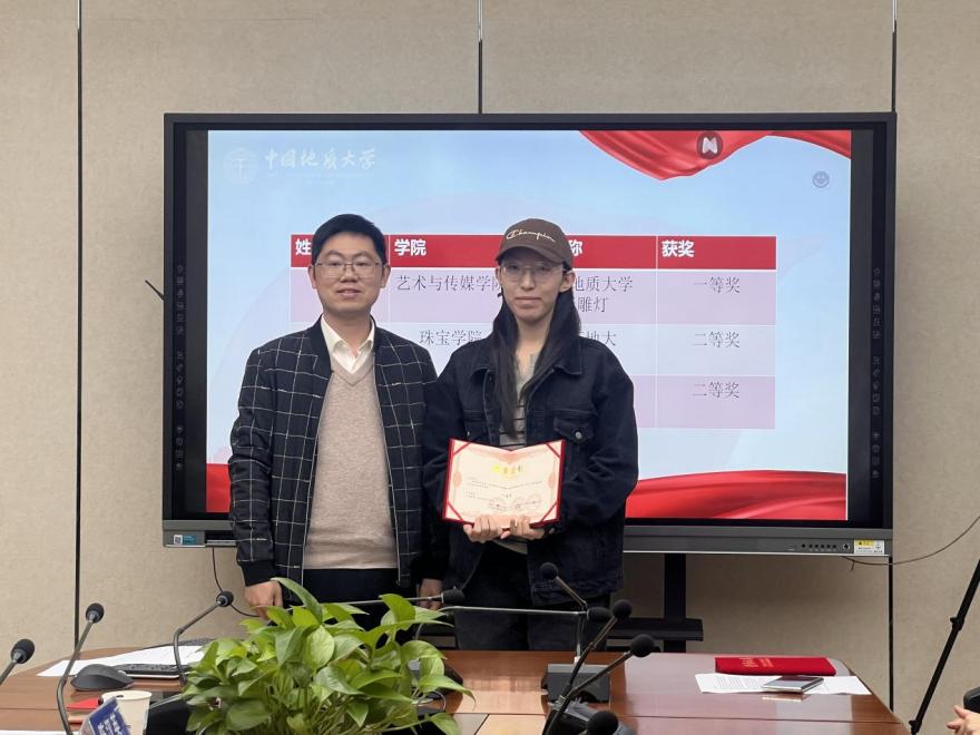 2024年3月13日第四屆文創設計大賽頒獎儀式在珠寶學院成功舉行。儀式由珠寶學院黨委副書記陳漢英主持,校黨委宣傳部副部長吳仁喜、出版社副社長余江濤、出版社副總經理張琰、出版社編輯李應爭出席,獲獎人員及學院師生代表參加了本次活動。
