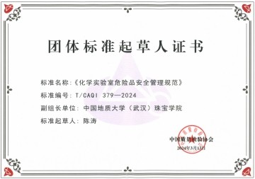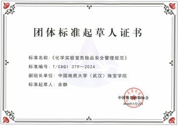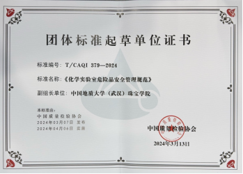 根據《中國質量檢驗協會團體標準管理辦法》的有關規定,由中國質量檢驗協會組織制定的《化學實驗室危險品安全管理規范》(T/CAQI 379-2024)團體標準已按規定程序審查、審批通過,自2024年4月6日起實施。珠寶學院作為副組長單位與通標中研標準化技術研究院(北京)有限公司、濟南市產品質量檢驗院、安徽省產品質量監督檢驗研究院、上海浦東新區舟橋職業安全健康事務所、南京市產品質量監督檢驗院合作研制該標準。余靜副教授、陳濤教授分別作為第二、第三起草人參與標準研制。