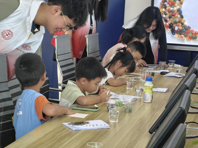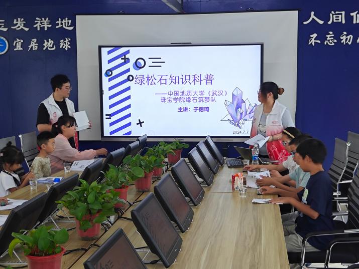 本次科普活動分為兩個環(huán)節(jié)。首先,團隊成員從綠松石的歷史、文化、礦物學特征、分類以及資源保護等多個維度進行宣講,介紹綠松石的獨特魅力,提升小朋友對綠松石的認識。同時宣講中強調(diào)綠松石資源的珍貴和不可再生性,提高大家的環(huán)境資源保護意識,共同維護綠松石資源的穩(wěn)定和安全。團隊成員在宣講過程中設置了許多互動問答環(huán)節(jié),激發(fā)了孩子們的參與熱情,推動了綠松石科普活動的順利進行。