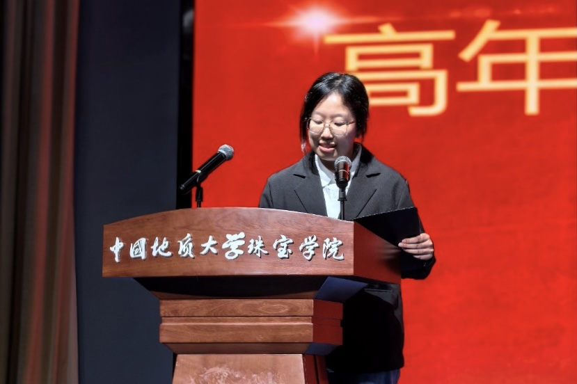 本科生高年級代表李箐紓為同學們提供了學習不停、規劃不止、踐行不停的建議,道出了AI時代下同學們需要努力的方向和前行的道路。她希望同學們勇于創新,將珠寶和科技緊密結合,讓寶石與首飾展現出時代感和文藝感。