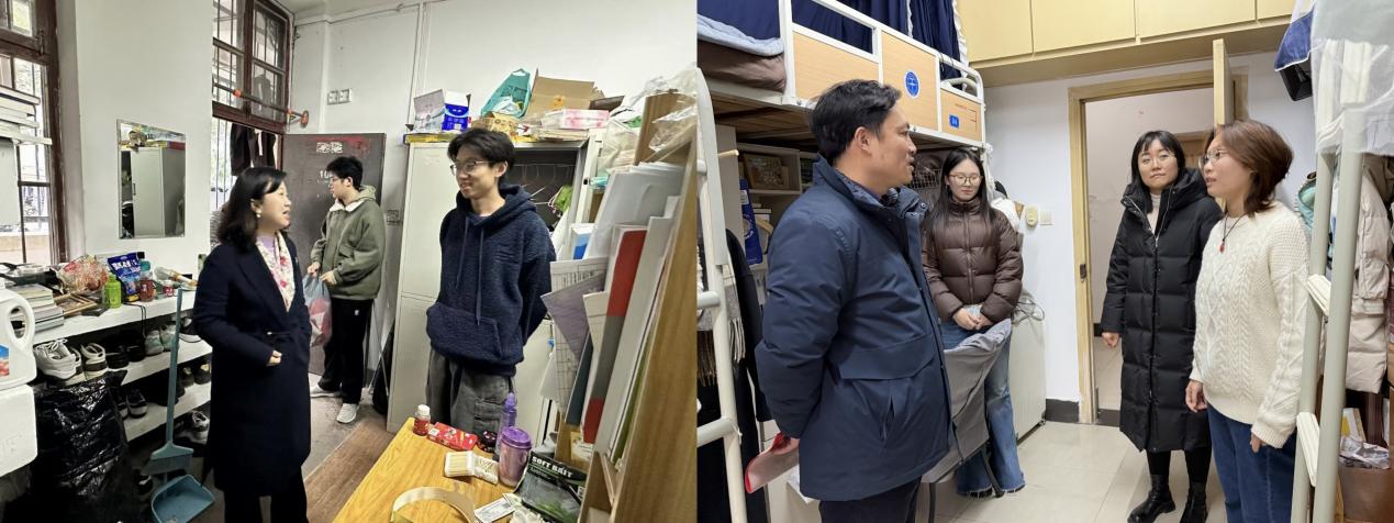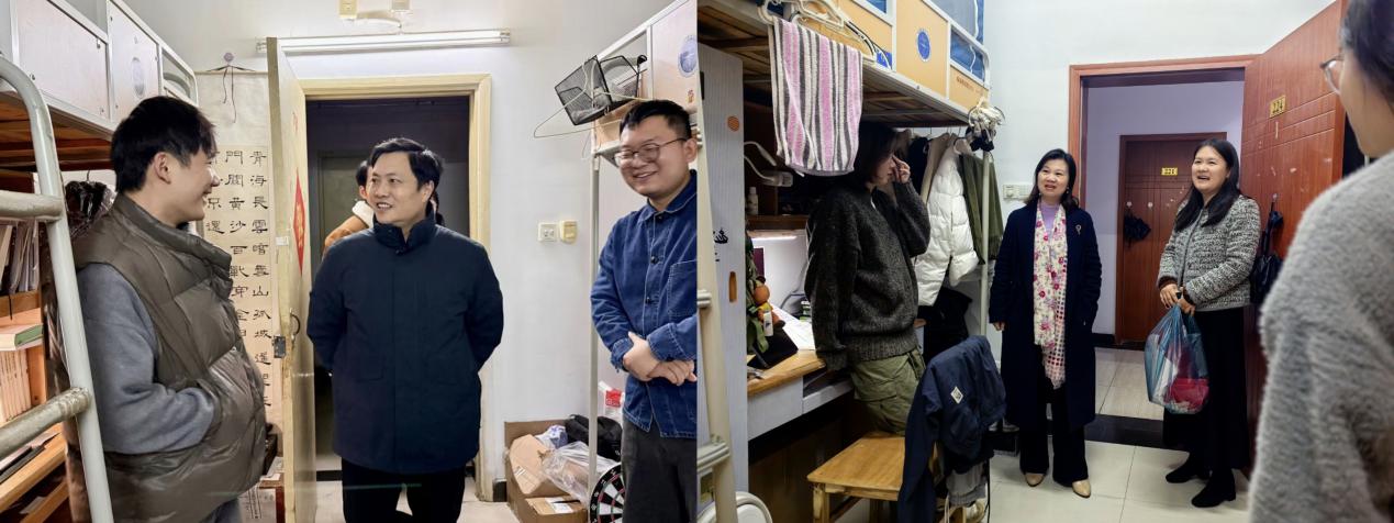 此次走訪活動共走訪了本研十二個宿舍,老師們深入了解了同學們的就業進展、學習生活和科研方向等方面的情況,既溫暖了同學們的心,也促進了學院與學生之間的溝通與互動。在走訪過程中,老師們與同學們面對面交流,細致了解他們的學習、生活和思想狀態,特別關注學業與生活中遇到的困惑與挑戰。“課業壓力如何”“研究方向確定了嗎?”“課程學習與生活上是否遇到問題?”這些關切讓同學們真切感受到了學院在寒冬時節送來的溫暖與關懷