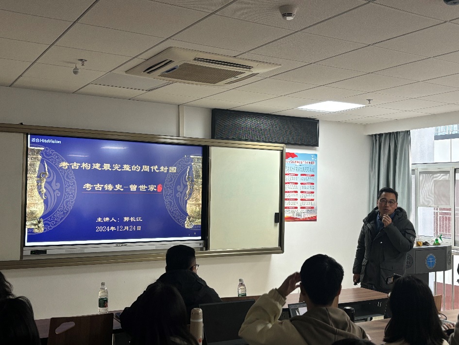 12月24日下午,在東教樓B0203,湖北省文物考古研究院副院長、國家級青年英才入選者郭長江研究館員,以《考古鑄史——曾世家》為主題,為在場師生帶來了一場深入淺出的學術講座。