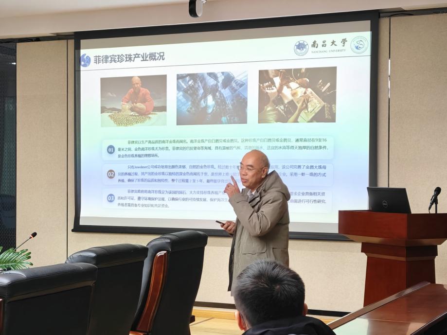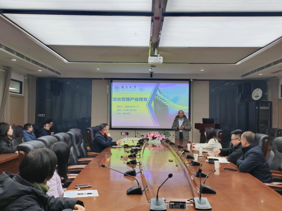 12月25日上午,應(yīng)沈錫田教授和余靜副教授邀請,南昌大學(xué)生命科學(xué)學(xué)院洪一江教授來我院作“中國淡水珍珠產(chǎn)業(yè)發(fā)展歷程”的學(xué)術(shù)講座。珠寶學(xué)院副院長周琦深主持,學(xué)院部分師生參加了講座。
