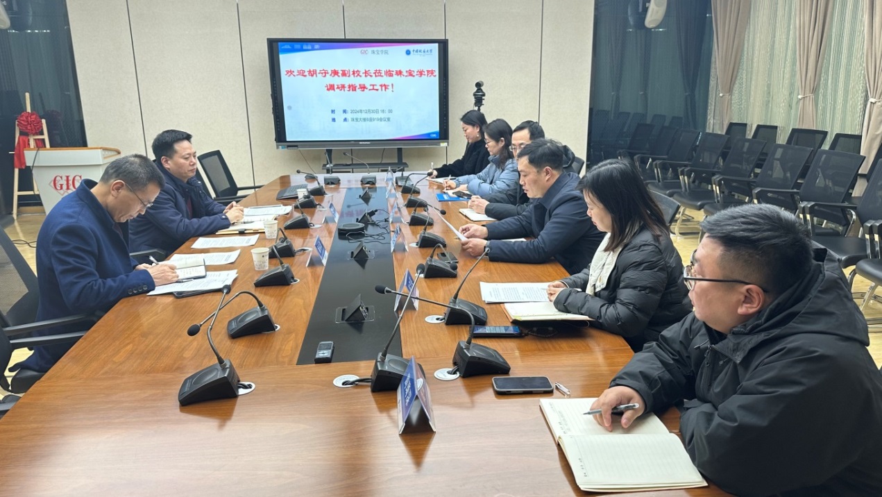 12月30日下午,校黨委常委、副校長胡守庚來珠寶學院調研,校財務與資產管理部部長楊從印陪同調研,珠寶學院領導班子成員參加。