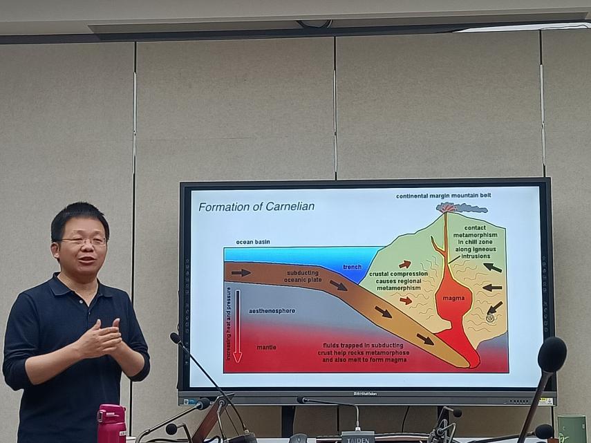 2025年3月5日上午,中國科學院地質與地球物理研究所唐自華副研究員應余靜副教授邀請來我院,作了題為“紅玉髓在絲綢之路上的史前傳播”的學術講座。