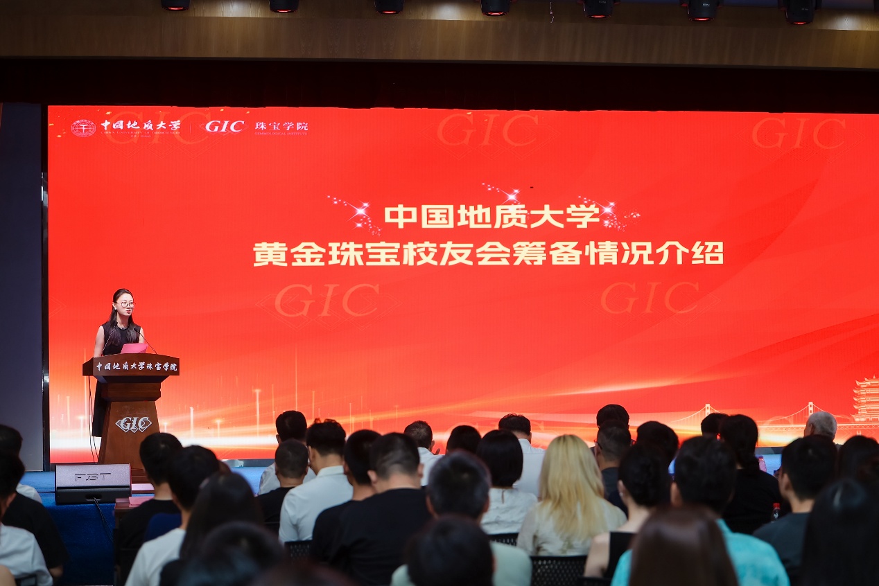 中國地質大學(武漢)校友與社會合作處副處長王瑩宣讀中國地質大學黃金珠寶校友會成立批復。