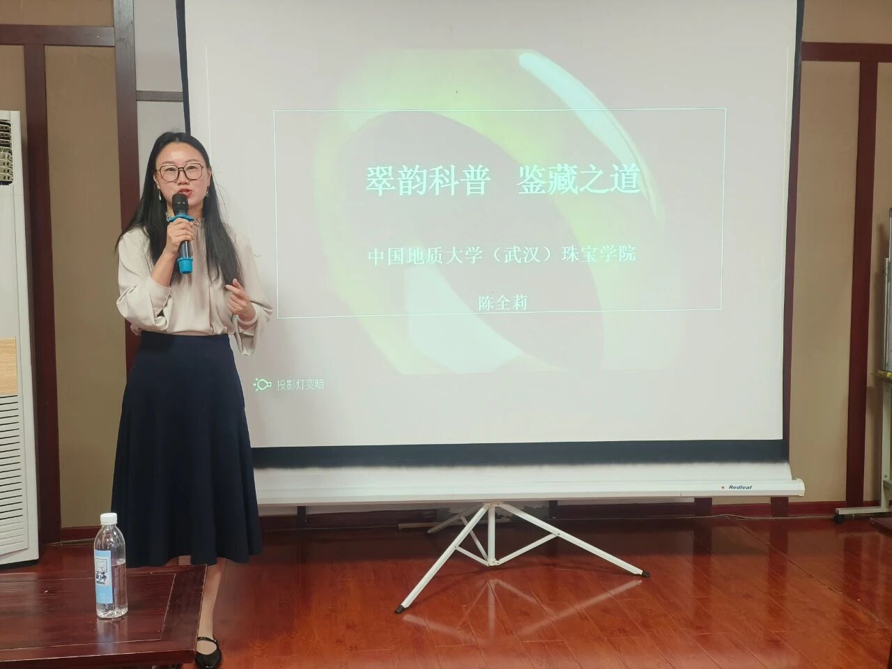 本次講座特別邀請中國地質大學(武漢)珠寶學院副院長陳全莉擔任主講人,圍繞翡翠鑒別、選購技巧等內容展開科普,為現場市民帶來一場干貨滿滿的“珠寶知識課堂”。