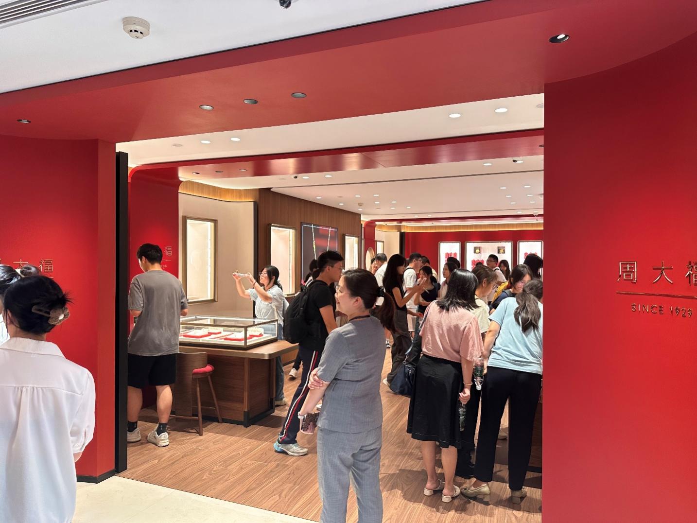 師生一行了解了“園區規劃與產業布局”。周大福講解員重點介紹了公司生產制造區、營銷展示區、培訓研發區、員工生活區等多個區塊的協同運營。隨后參觀了公司的營銷展廳。這里分為黃金飾品、鉆石珠寶、翡翠玉石、彩寶首飾四大展區,陳列著周大福大量的當季熱銷款、經典款及定制款產品,新生們化身“小小經銷商”,在驚嘆于產品精美的同時,對珠寶產品的價格有了初步的了解。通過觀察選貨臺的產品陳列、聽講解銷售數據背后的邏輯,新生們深刻認識到:珠寶產品的設計與生產,始終要以市場需求為導向。商品選貨臺是連接企業與客戶的關鍵節點,不僅是“賣貨”的地方,更是收集市場需求、調整產品策略的“窗口”,珠寶銷售不只是“推銷產品”,其核心是“匹配需求”,既要考慮產品的設計與品質,更要結合客戶的使用場景、情感訴求與預算,這也是珠寶專業同學未來需要掌握的核心能力之一。