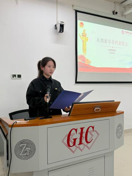 第3期優(yōu)秀學(xué)員代表李箐紓同學(xué)分享了在骨干培訓(xùn)班的寶貴經(jīng)驗(yàn)。她提到,學(xué)生骨干要重視思想引領(lǐng)、創(chuàng)新前行與團(tuán)隊(duì)合作,其真誠(chéng)的分享為新學(xué)員提供了清晰的成長(zhǎng)參考。本期學(xué)員代表劉沛銘發(fā)言。她表示,要以歸零心態(tài)求知、以律己準(zhǔn)則守紀(jì)、以踐履精神行動(dòng)、以共享胸懷同行。承諾將踐行青年擔(dān)當(dāng),展現(xiàn)珠寶學(xué)子的青春風(fēng)貌。