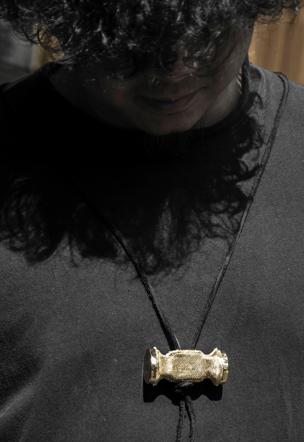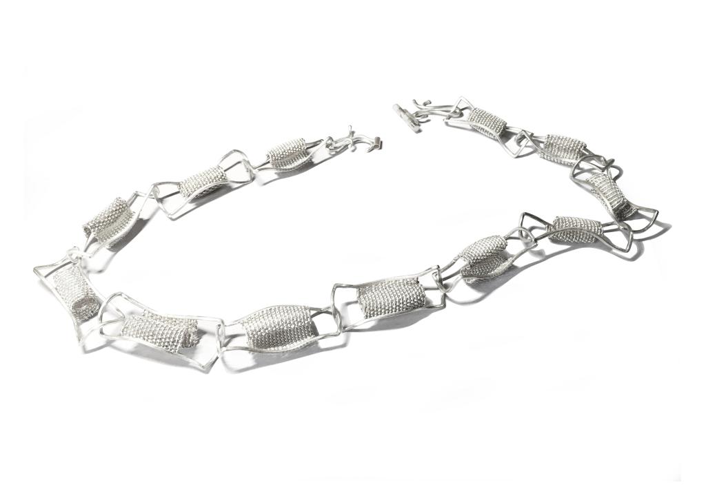 閆政旭老師創作構思:《行織有道》這套作品以金屬編織作為主體工藝,其技法脫胎于傳統細金工藝中的花絲工藝。其中“堆、累、編、織、掐、填、攢、焊”是該工藝的核心技法。此套作品將編、織、焊等技法運用到藝術創作當中,實現了傳統工藝的現代設計轉譯,鑒古但不泥古,展示了創作者在傳統工藝中尋求創新的探索精神。