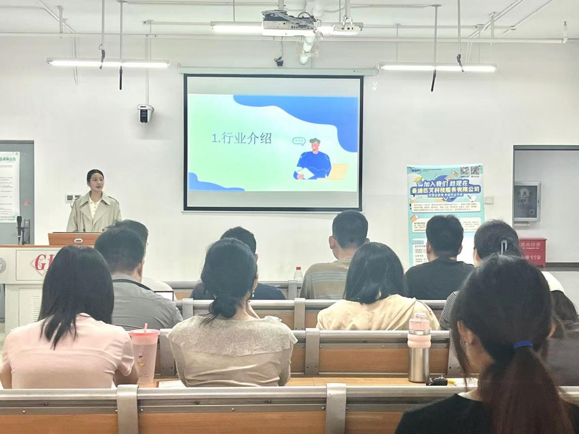 (通訊員:潘晗笑)10月15日下午,曼迪匹艾科技服務有限公司(MDPI)在學院807教室成功舉辦了宣講招聘會。本次招聘會由MDPI的HR及資深員工組成宣講團隊,向?qū)W院學生詳細介紹了公司的企業(yè)文化、行業(yè)背景、崗位需求以及職業(yè)發(fā)展路徑。
