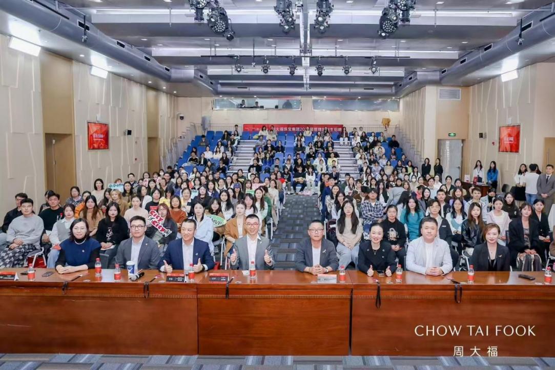 10月28日下午,周大福2025屆畢業生校園宣講招聘活動于中國地質大學(武漢)珠寶學院四樓報告廳舉行。周大福中國營運管理中心商品管理總經理裴翔、東區區域總經理石開、中國營運管理中心人力資源總經理甘泉、東區業務副總經理葛柳、東區業務副總經理王喆鑫、東區營銷管理部副總經理王瑋、中國營運管理中心雇主品牌與招聘總監葛晶晶、東區人力資源總監楊慧出席了宣講招聘會。宣講會為觀眾們帶來了公司典藏系列展品,為廣大學生介紹了周大福公司文化。